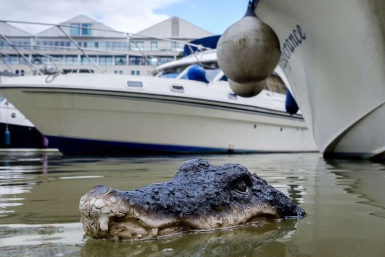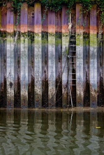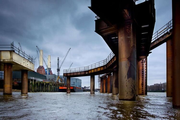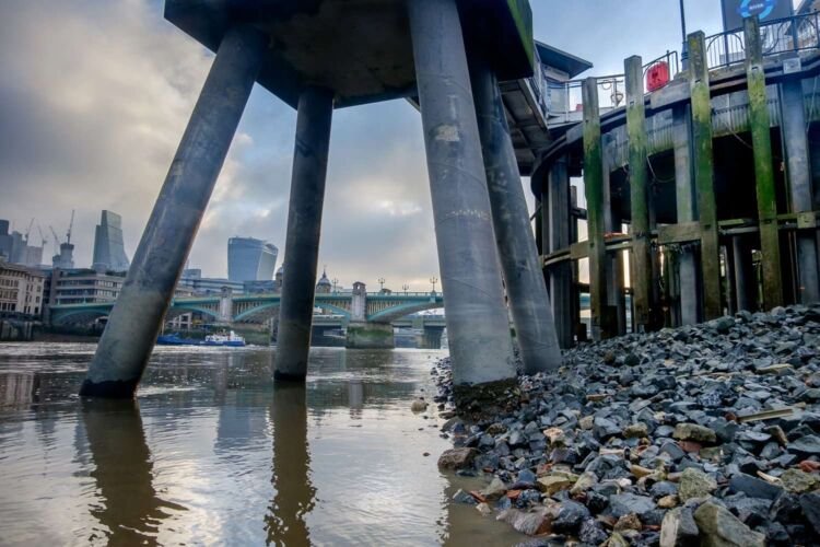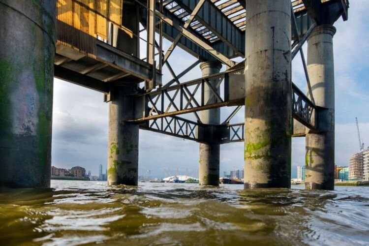 As I am used to working in, on and underwater, I take us beneath pontoons, inside tunnels, up tributaries and between houseboats. By sharing my intimate water level view, we see the changing London skyline coming into a new and sometimes startling focus.